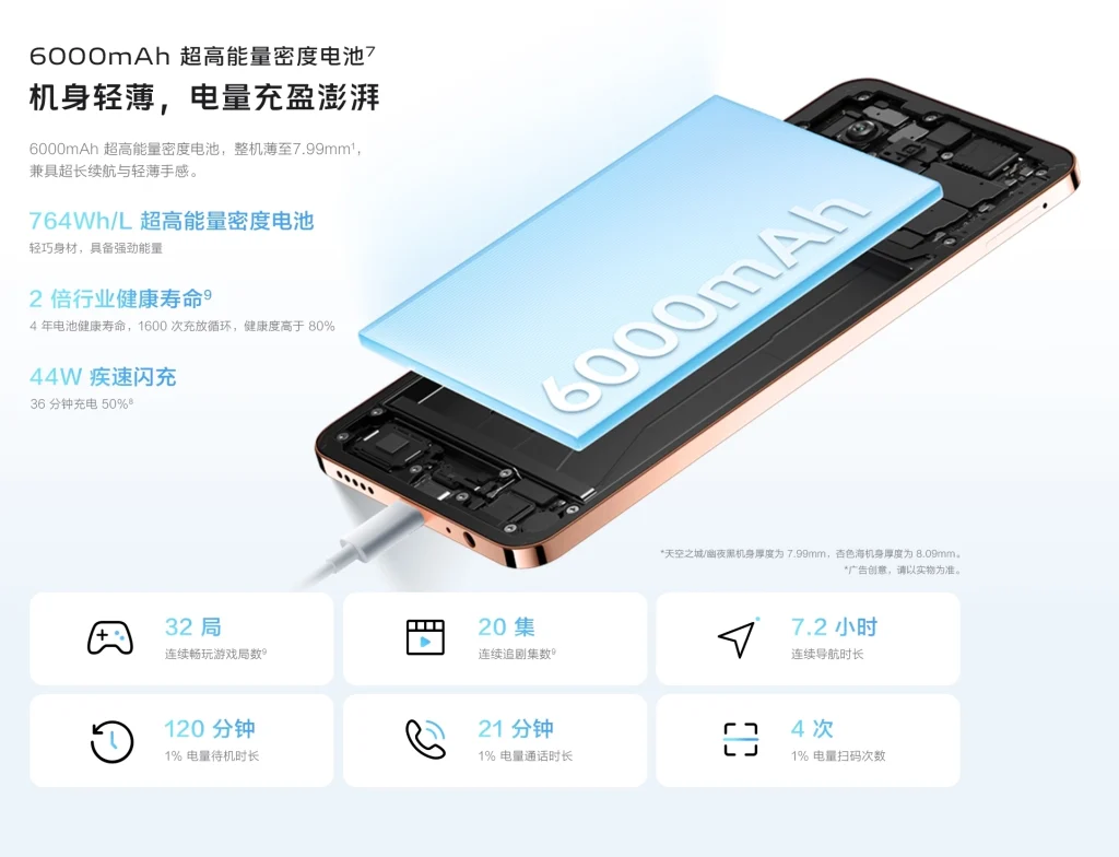 รวมทั้งติดตั้งเซ็นเซอร์สแกนลายนิ้วมือที่ด้านข้างเครื่อง, รองรับการกันน้ำและฝุ่นระดับ IP64, ลำโพงสเตอริโอคู่ที่สามารถส่งเสียงได้ดังถึง 300%, รองรับ 2 SIM, รองรับ 4G LTE/5G dual band (SA/NSA), Wi-Fi 802.11 a/b/g/n/ac, dual-band, Bluetooth 5.1, พอร์ต USB-C และใข้แบตเตอรี่ความจุ 6,000mAh รองรับการชาร์จเร็ว 44W ชาร์จ 0-50% ในเวลาเพียง 36 นาที