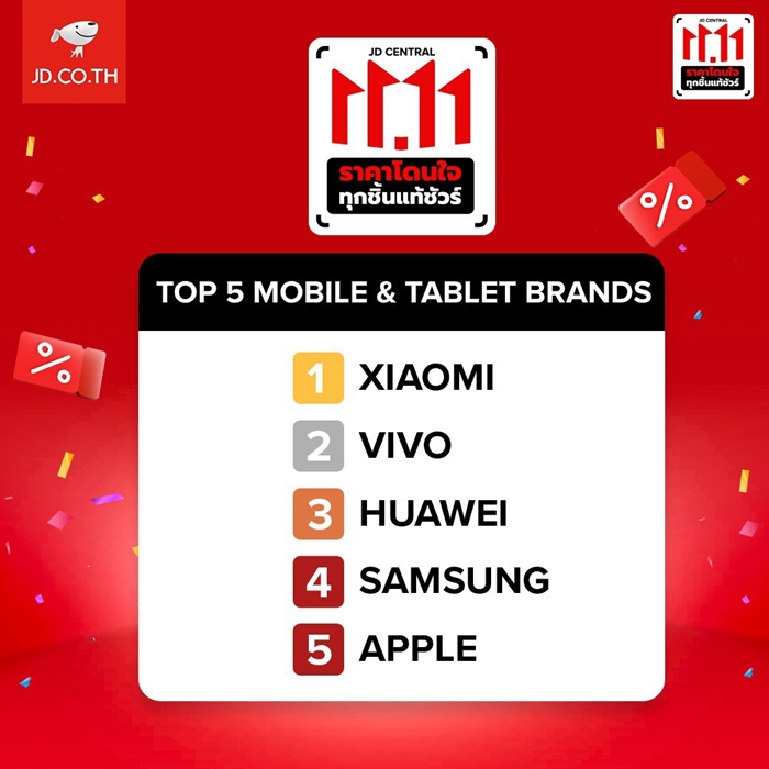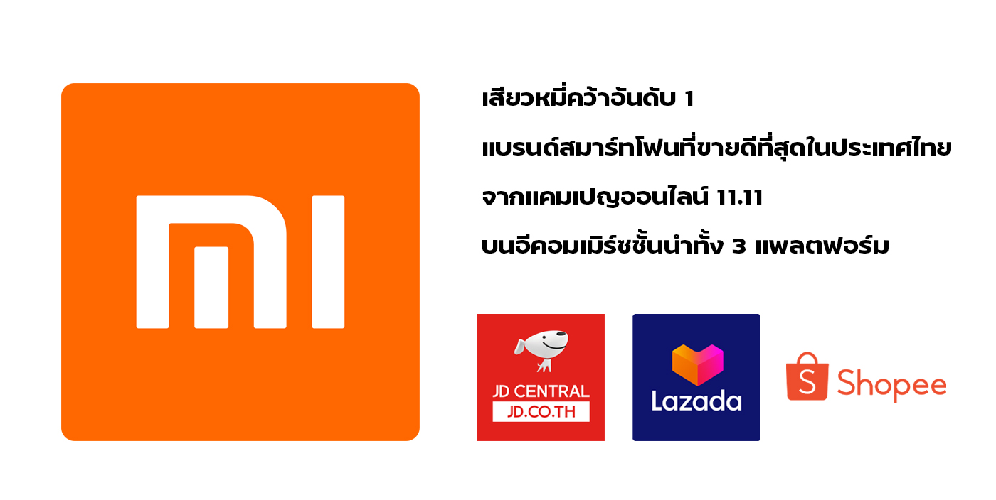 เสียวหมี่ ผู้นำด้านเทคโนโลยีระดับโลก คว้าแชมป์เป็นแบรนด์สมาร์ทโฟนที่ขายดีที่สุดอันดับหนึ่งในประเทศไทยในช่วงแคมเปญออนไลน์ 11.11 บนช่องทางอีคอมเมิร์ซชั้นนำทั้ง 3 แพลตฟอร์มทั้งบน Lazada, Shopee และ JD Central