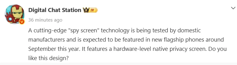 ดูเหมือนว่าสมาร์ตโฟนเรือธงรุ่นใหม่ที่จะเปิดตัวในช่วงครึ่งหลังของปี 2026 กำลังจะยกระดับความเป็นส่วนตัวไปอีกขั้น ล่าสุดมีรายงานจากแหล่งข่าวที่เชื่อถือได้อย่าง Digital Chat Station (DCS) ระบุว่าผู้ผลิตสมาร์ตโฟนยักษ์ใหญ่ฝั่งจีนกำลังทดสอบเทคโนโลยีหน้าจอ Anti-peep (Privacy Display) ระดับฮาร์ดแวร์ ซึ่งเป็นฟีเจอร์แบบเดียวกับที่จะมีใน Samsung Galaxy S26 Ultra ที่กำลังจะเปิดตัวในสัปดาห์หน้า