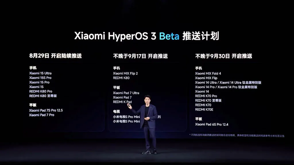 Xiaomi ได้เปิดเผยรายชื่ออุปกรณ์กลุ่มแรกที่จะได้รับสิทธิ์เข้าร่วมทดสอบ HyperOS 3.0 Beta ในจีน โดยแบ่งตามช่วงเวลาดังนี้