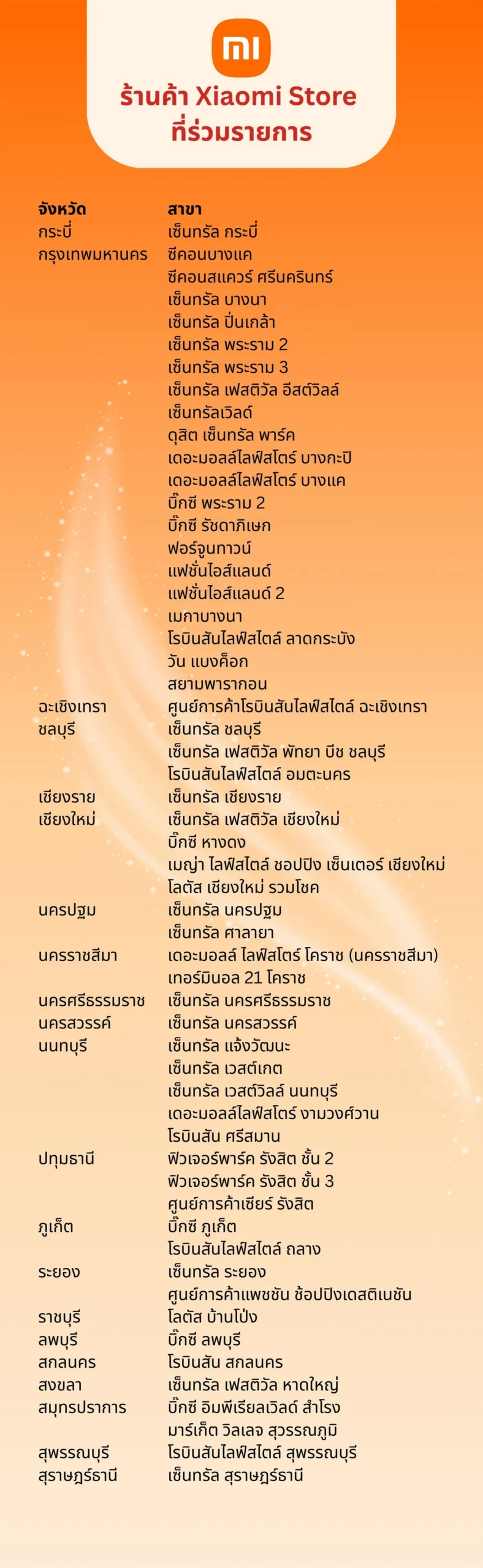ผู้ให้บริการ Grab / LINE MAN / Bolt (Rider & Driver) ทุกท่านสามารถเป็นเจ้าของ REDMI Note 15 Series ทุกรุ่นและรับส่วนลดพิเศษ 5%1 ได้แล้ววันนี้ ถึง 31 มกราคม 2569 เพียงกดรับโค้ดส่วนลดในแอปพลิเคชันของผู้ให้บริการของตนเอง แล้วมาแสดงหน้าร้านหรือกรอกลงในเว็บไซต์ก่อนขั้นตอนการชำระเงิน ที่ www.mi.com/th และ Xiaomi Store15 56 สาขาที่ร่วมรายการดังนี้