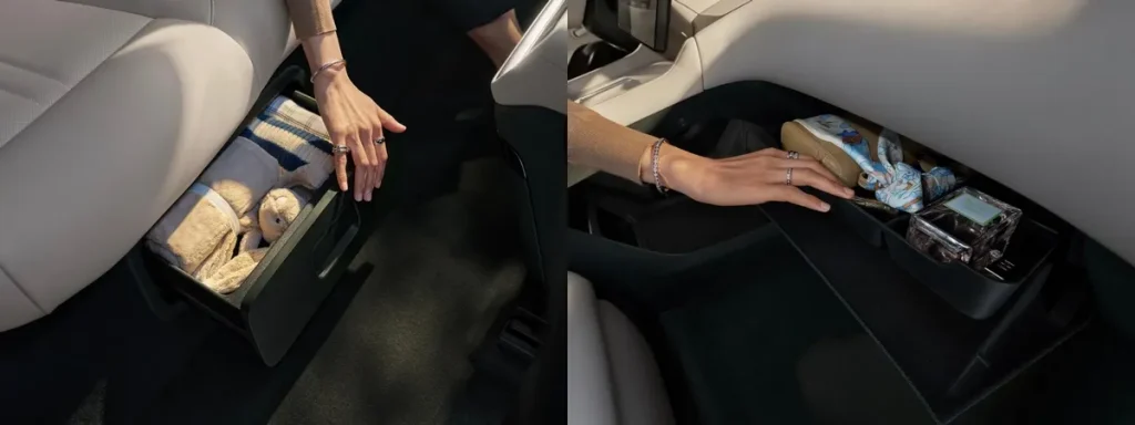 เมื่อพับเบาะหลังลง ความจุจะเพิ่มขึ้นเป็น 1,758 ลิตร มีพื้นที่เพียงพอสำหรับอุปกรณ์แคมป์ปิ้งครบชุด ช่องเก็บของพร้อมระบบล็อกด้วยรหัสผ่านขนาด 13.7 ลิตร สามารถล็อกด้วยเสียงและรหัสผ่านเพื่อเก็บของมีค่าอย่างปลอดภัย และมีช่องจัดระเบียบสำหรับเก็บของชิ้นเล็กๆ ให้เป็นระเบียบและหยิบใช้ง่าย ลิ้นชักด้านหลังมีความจุพิเศษ 5.2 ลิตร เหมาะสำหรับเก็บทิชชู ผ้าห่ม ของเล่น และของใช้ประจำวันอื่นๆ