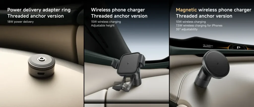 ระบบนิเวศ “Human X Car X Home” ได้รับการอัปเกรดหลายอย่างในครั้งนี้ พอร์ต Dual-thread ทั้งสองด้านของแดชบอร์ดสามารถจ่ายไฟได้ถึง 27W สำหรับอุปกรณ์เสริม เช่น กล้องแอคชั่นหรือโทรศัพท์มือถือ ภายในห้องโดยสารมีจุดยึดแม่เหล็ก 9 จุดสำหรับอุปกรณ์เสริม เช่น กล่องทิชชู กล่องแว่นตา และปุ่มควบคุมที่เป็นแม่เหล็ก รวมถึงที่ยึดโทรศัพท์ไร้สายแบบแม่เหล็กที่เพิ่มเข้ามาใหม่