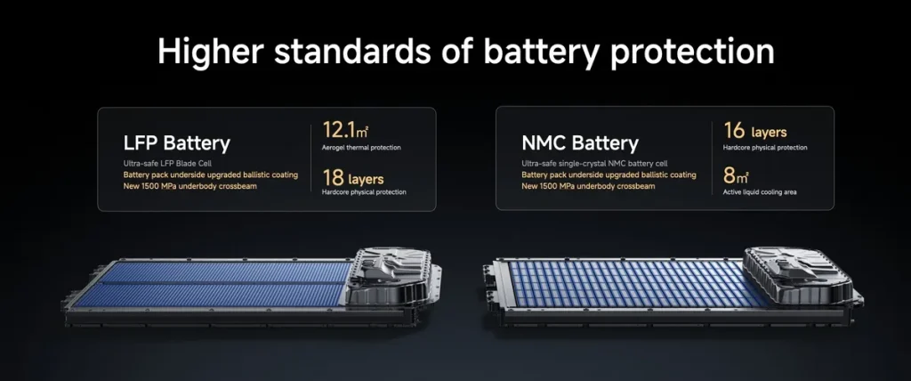 ในด้านการป้องกันแบตเตอรี่ ทั้งแบตเตอรี่ลิเธียมไอออนฟอสเฟตและแบตเตอรี่ลิเธียมเทอร์นารีใน Xiaomi YU7 เป็นไปตามมาตรฐานความปลอดภัยที่สูงเป็นพิเศษ ซึ่งเกินข้อกำหนดความปลอดภัยของแบตเตอรี่แห่งชาติฉบับใหม่ของจีนปี 2025 ไปแล้ว