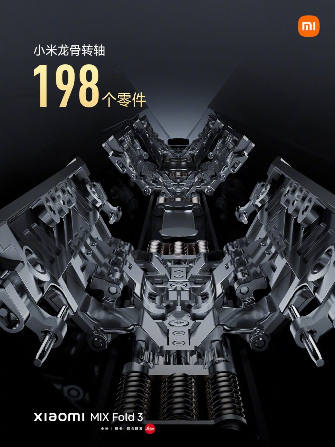 บานพับใหม่ของ Mix Fold 3 มาพร้อมกับบานพับ 3 ชิ้น และบานพับขนาดเล็ก 14 ชิ้นที่ติดกับจอแสดงผลหลักแบบพับได้เพื่อความทนทานที่ดีขึ้นและกลไกการหมุนเหล็กกล้าคาร์บอนเซรามิก และรองรับการเปิดแบบโฮเวอร์ 45°- 135° ซึ่งช่วยให้คุณถือโทรศัพท์ได้เหมือนแล็ปท็อปขนาดเล็ก