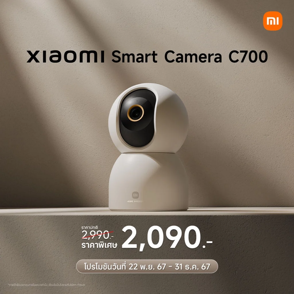 Xiaomi Smart Camera C700 กล้องวงจรปิดที่ให้ภาพระดับ 4K เพื่อการมองเห็นรายละเอียดที่ชัดเจนซึ่งมาพร้อมชิปเช็ต AI ระดับเรือธงเพื่อฟังก์ชันการใช้งานและการประมวลผลที่รวดเร็วแม่นยำในการจับภาพ เชื่อมต่อ และรักษาความปลอดภัยของข้อมูล