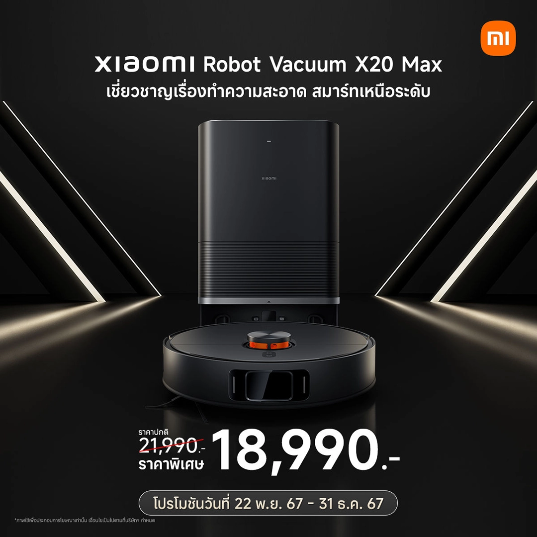 เสียวหมี่ ประเทศไทย ประกาศวางจำหน่ายผลิตภัณฑ์ AIoT รุ่นใหม่อย่างเป็นทางการ ประกอบด้วย หุ่นยนต์ทำความสะอาด Xiaomi Robot Vacuum X20 Max ราคาพิเศษ 18,990 บาท กล้องวงจรปิด Xiaomi Smart Camera C700 ราคาพิเศษ 2,090 บาท