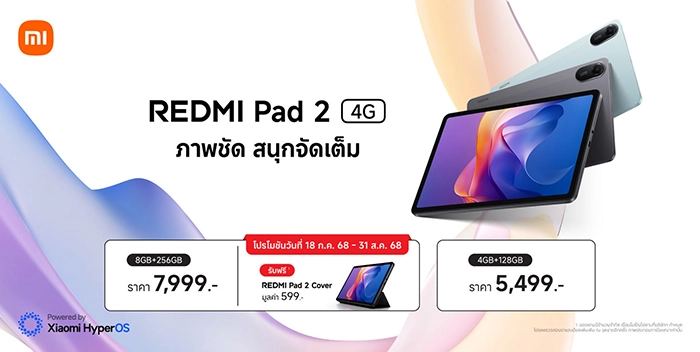 พิเศษ! สำหรับลูกค้าที่ซื้อ Redmi Pad 2 4G รุ่นความจุ 8GB + 256GB ในระหว่างวันที่ 18 กรกฎาคม 2568 ถึง 31 สิงหาคม 2568 รับฟรี Redmi Pad 2 Cover มูลค่า 599 บาท7